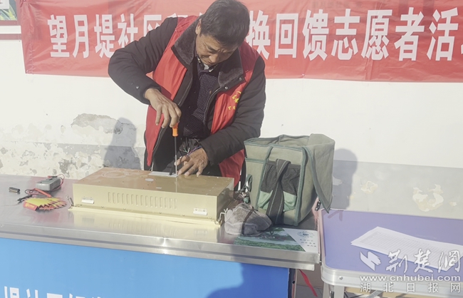 禹王街道望月堤社區(qū),除了積分兌換活動外,還組織社區(qū)“銀發(fā)維修”志愿服務(wù)隊,為居民們提供家用電器免費(fèi)便民維修服務(wù)?,F(xiàn)場居民從家中拿來電風(fēng)扇、電熱水壺、電飯煲、吹風(fēng)機(jī)等小家電讓維修人員“會診”,各種小家電擺滿了服務(wù)臺。