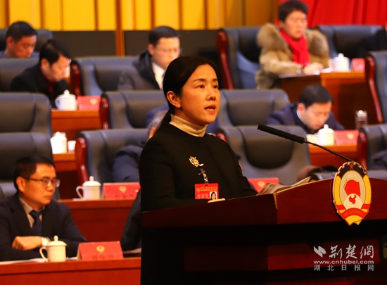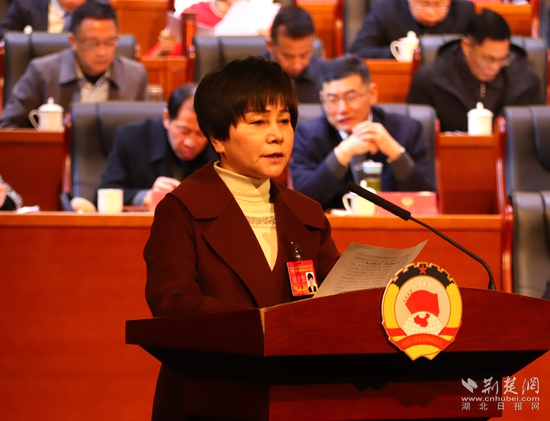 咸安區(qū)政協(xié)副主席雷春作提案工作報(bào)告。黃錚 攝