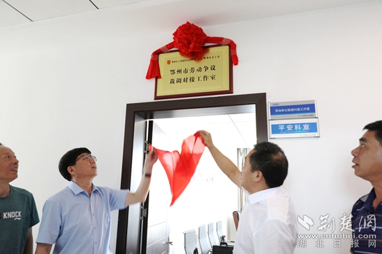 “人社+工會(huì)“勞動(dòng)爭議裁調(diào)對(duì)接工作室揭牌。通訊員 供圖