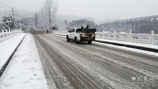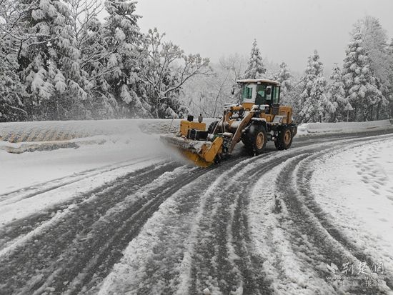 在各重點路段,工作人員迅速設置提示牌,并及時砍伐被積雪壓倒的楠竹等樹木。此外,還通過人工鏟雪、機械撒工業(yè)鹽等措施,爭取在最短的時間內搶通受冰雪影響的道路。