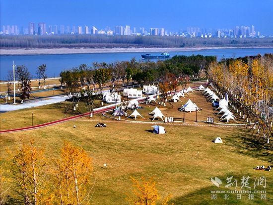 冬日暖陽,樊口江灘邊,散布著數(shù)十個露營帳篷。草地上,有的游客在燒烤,有的游客坐在小凳子曬太陽閑聊,有的游客在逗弄著寵物……幾個小朋友沿著江堤放風(fēng)箏,遠處的長江,貨船穿梭不息。