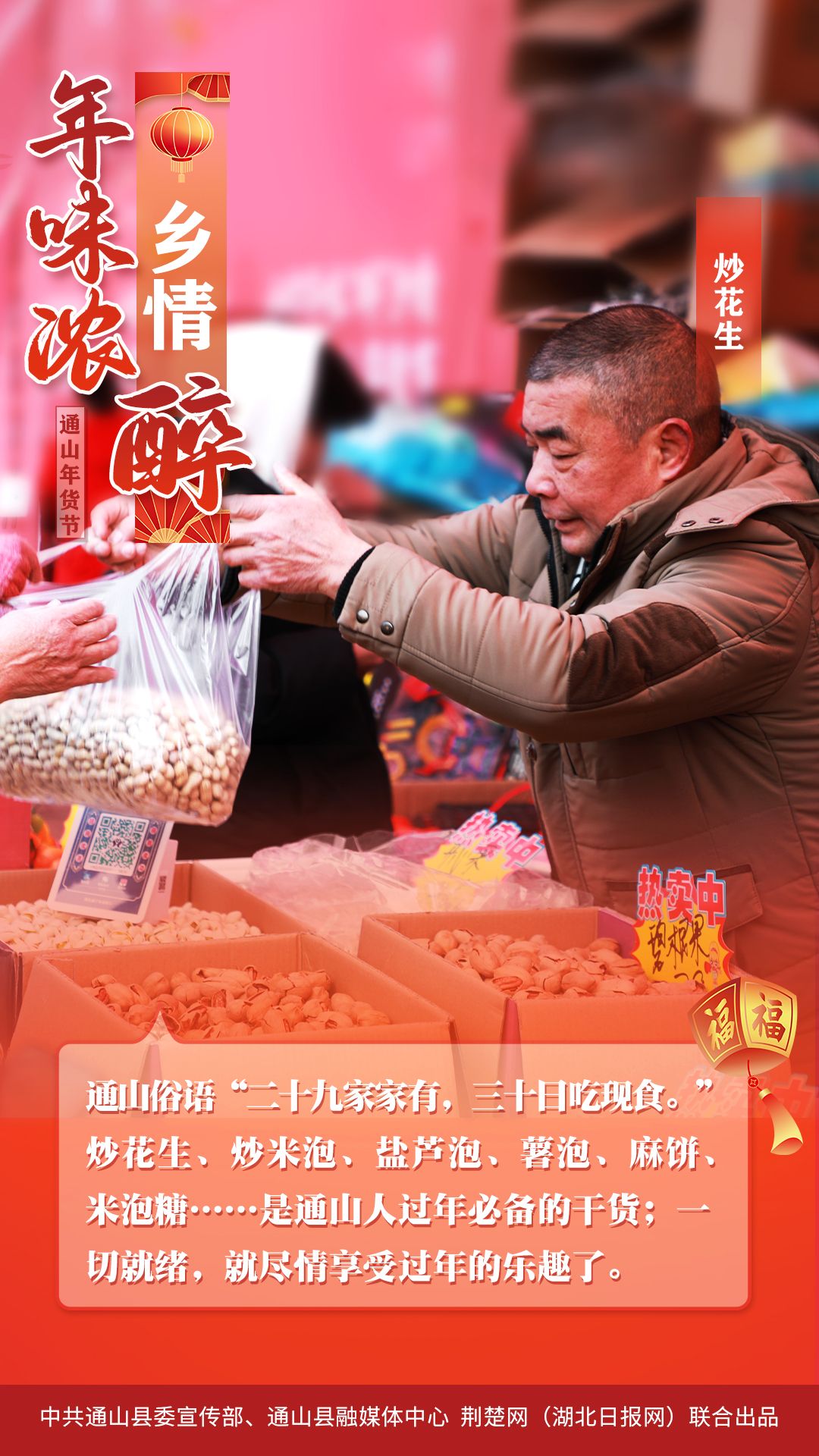 1月25日,2024通山縣首屆“年貨節(jié)”主會場,匯集傳統(tǒng)手工美食、酒類、飲品、食品、民俗文化、工藝品、金融通信服務(wù)、特色小吃8個主題消費(fèi)展區(qū)190個展位,匯聚了該縣本地美味山珍,吸引了該縣群眾紛紛前來“打年貨”。
