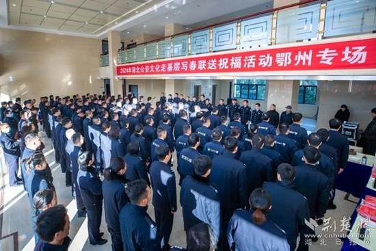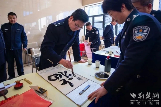 荊楚網(wǎng)(湖北日?qǐng)?bào)網(wǎng))訊(通訊員 王廳 張宏斌)迎春納福送春聯(lián),翰墨飄香暖警心。1月23日上午,省廳政治部、湖北公安文聯(lián)組織全省公安機(jī)關(guān)書(shū)法藝術(shù)家走進(jìn)鄂州市公安局,開(kāi)展寫(xiě)春聯(lián)送祝?;顒?dòng)。