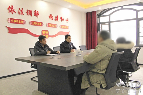 “大家都是鄰居,快過年了,希望大家能夠以和為貴、相互理解……”早上八點半,剛進(jìn)門,就看到所長丁建勛在給群眾做調(diào)解。