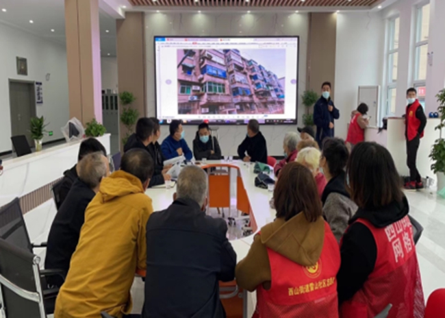 在34棟天面整治項(xiàng)目中,雷山社區(qū)通過(guò)“線上+線下”創(chuàng)新共謀方式對(duì)居民需求摸底,引導(dǎo)居民參與建言獻(xiàn)策,搭建社區(qū)議事廳-網(wǎng)格驛站-議事點(diǎn)等共謀陣地5處,從居民反映最強(qiáng)烈為主進(jìn)行開展入戶摸排了解情況。