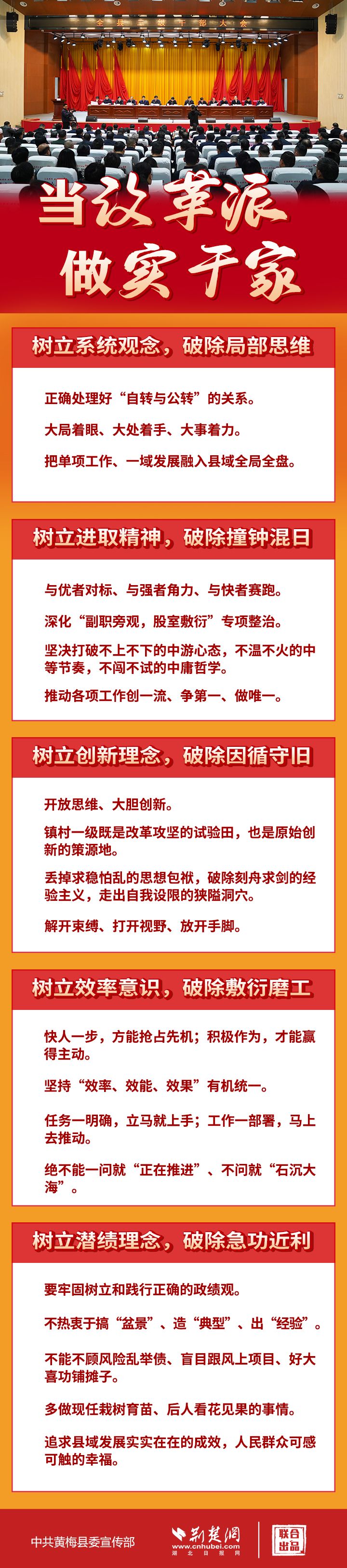 2月20日,黃梅縣召開三級(jí)干部大會(huì)??h委書記劉欲曉提出,黃梅要前進(jìn),根本在干部。要引領(lǐng)全縣干部解放思想、甩開膀子、邁開步子、干出樣子,在堅(jiān)持先立后破中保持站位前列姿態(tài)。