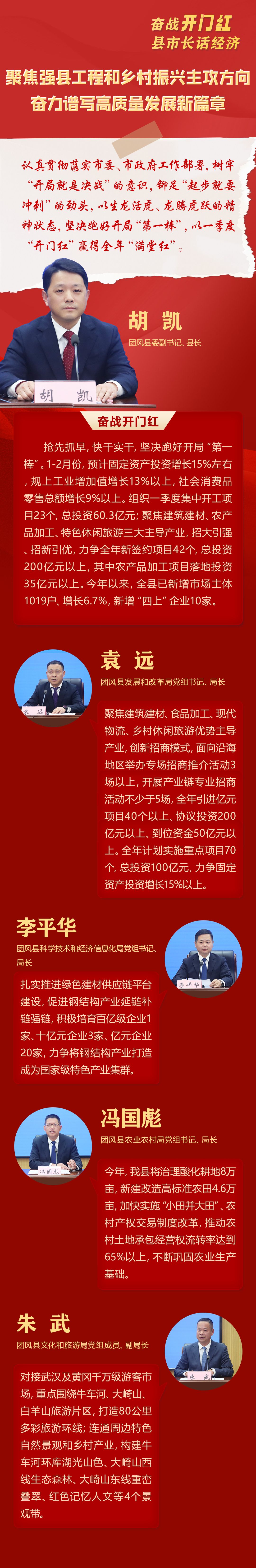 3月7日,黃岡召開(kāi)“奮戰(zhàn)開(kāi)門(mén)紅 縣市長(zhǎng)話經(jīng)濟(jì)”系列新聞發(fā)布會(huì),團(tuán)風(fēng)縣就“聚焦強(qiáng)縣工程和鄉(xiāng)村振興主攻方向,奮力譜寫(xiě)高質(zhì)量發(fā)展新篇章”相關(guān)情況回答社會(huì)關(guān)切。