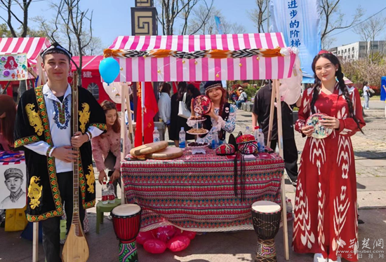 “前段時間我在微信公眾號上看到了青春市集這個活動,感覺很有意思,于是在學校的組織下報名參與了,這次我?guī)砹宋覀兠褡宓奶厣b和樂器展示,想通過這種形式可以讓更多人來了解我們的少數(shù)民族文化?!眮碜渣S岡科技職業(yè)技術(shù)學院(何家湖校區(qū))的彭同學說。