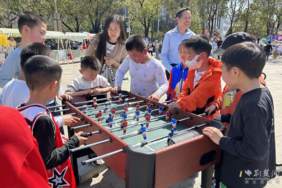 來自縣稅務局、縣檢察院、縣城管局、張家窯社區(qū)等單位也紛紛支起攤位,將宣傳窗口搬到市集,通過宣傳展板、發(fā)放宣傳單、寄語成長贏取游戲機會等形式,開展未成年人保護、法律知識宣傳、垃圾分類、i黃岡注冊宣傳等志愿服務,吸引過往青年群體參與體驗。