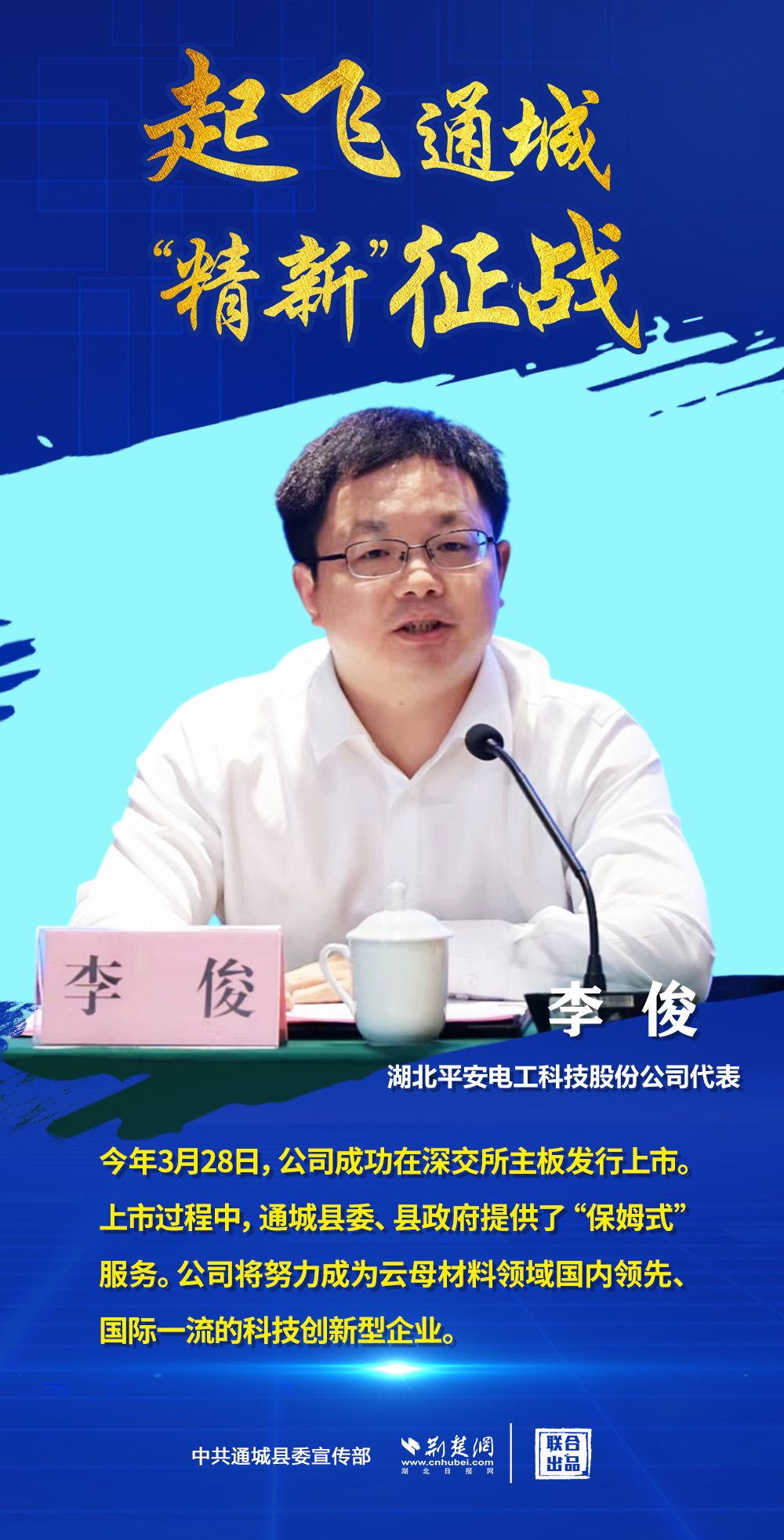 荊楚網(wǎng)(湖北日報網(wǎng))訊(記者 田城 通訊員 毛新民 付婧燁)4月18日,咸寧通城縣委常委、副縣長王功輝在該縣“專精特新”新聞發(fā)布會上表示,近年來該縣在電子信息、新材料、大健康三大優(yōu)勢產(chǎn)業(yè)發(fā)力,專精特新產(chǎn)業(yè)領域進展迅猛。