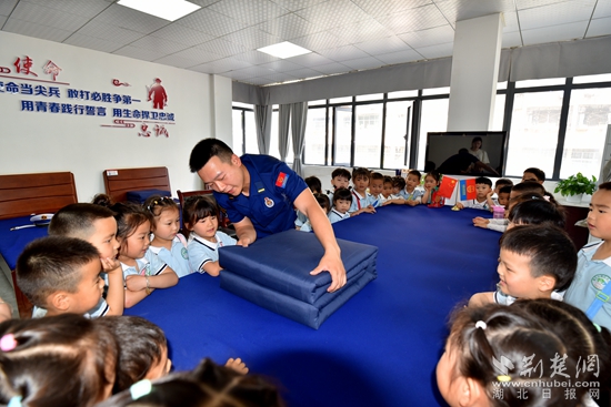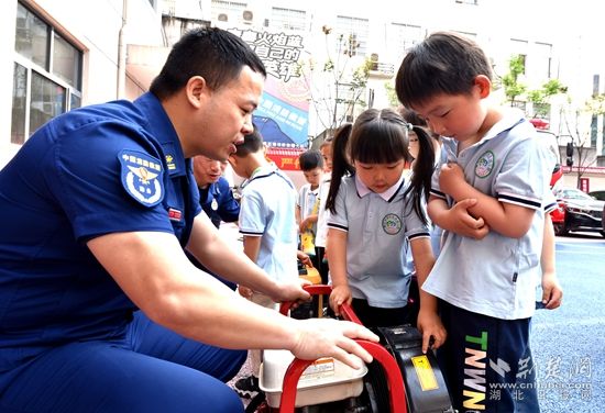當天上午,在黃石市政府機關(guān)幼兒園教師的帶領(lǐng)下,90余名小朋友走進華新路消防救援站,“零距離”體驗消防員工作生活、感受消防文化、學習消防知識。