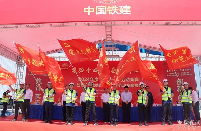 會上,為參建職工代表頒授爭創(chuàng)“黨員先鋒崗”、“工人先鋒號”、“青年突擊隊(duì)”、安全生產(chǎn)示范隊(duì)、技術(shù)創(chuàng)新攻關(guān)隊(duì)、后勤保障服務(wù)驛站旗幟。