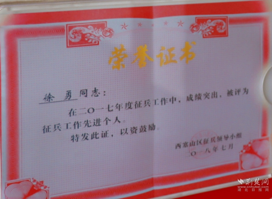1998年,徐勇專業(yè)回到地方,負責臨江社區(qū)人武工作。轉(zhuǎn)眼20多年過去,他先后向部隊輸送優(yōu)質(zhì)兵員100多名,并因征兵工作成效突出,多次被評為“征兵工作先進個人”。