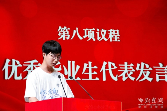 畢業(yè)典禮上,該校表彰了20名2024屆優(yōu)秀畢業(yè)生,以及14名2023年國家獎學(xué)金、勵志獎學(xué)金獲得者。典禮開始前,湖北工程職業(yè)學(xué)院8個(gè)二級學(xué)院輔導(dǎo)員代表還接力合唱了一曲《小美滿》,深情與畢業(yè)生們道別,“很高興參與你們的青春故事”。