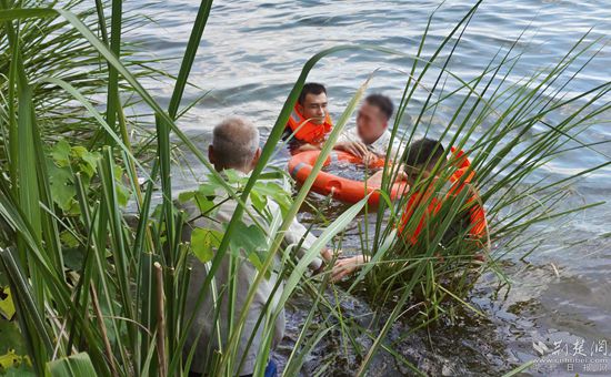 “當(dāng)時男子只有頭部露出水面,我有一米八,下水后腳下面是空的,根本不知道有多深。”特警隊員毛寧說。當(dāng)時男子在水里很慌,毛寧與另一名隊員帶著救生圈游到他身邊,二人合力將男子拖出水面然后救上岸邊。