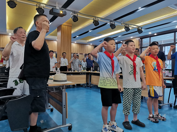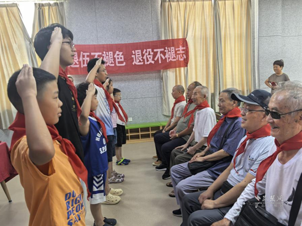 少先隊(duì)員為退役老兵們佩戴紅領(lǐng)巾。通訊員供圖
