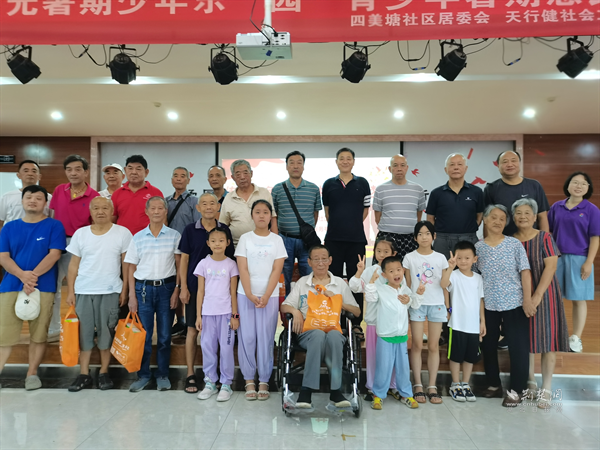 四美塘社區(qū)在楊園街眾成頤家養(yǎng)老服務(wù)中心五樓舉辦了一場別開生面的建軍節(jié)活動。楊園教育學(xué)院民樂團(tuán)、管樂團(tuán)的團(tuán)長同時也是退伍老兵的楊寶明給現(xiàn)場參與者帶來原創(chuàng)詩歌朗誦表演。退伍軍人為孩子們講解了國防軍事相關(guān)知識,并分享了自己的參軍經(jīng)歷。互動游戲“團(tuán)結(jié)大作戰(zhàn)”環(huán)節(jié)中,孩子們與退役軍人分組合作,共同完成了筷子疊杯子的挑戰(zhàn),在陣陣歡笑中,進(jìn)一步增進(jìn)了轄區(qū)退役軍人之間的聯(lián)系,也在孩子們心中播下了愛國擁軍的種子。