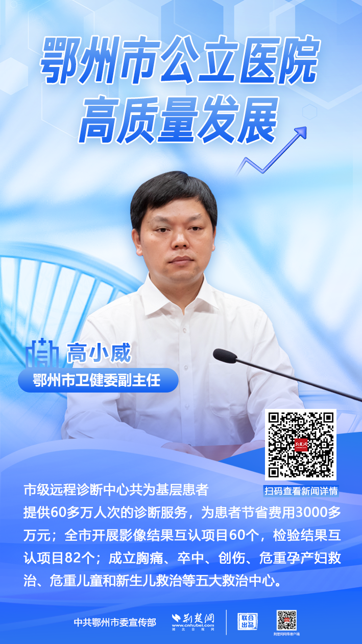荊楚網(wǎng)(湖北日?qǐng)?bào)網(wǎng))訊(記者 王焱堯 姜夢(mèng)瑤)8月8日,鄂州市舉辦公立醫(yī)院高質(zhì)量發(fā)展新聞發(fā)布會(huì),通報(bào)近年來該市在“推進(jìn)衛(wèi)生健康事業(yè)高質(zhì)量發(fā)展”中,公立醫(yī)院發(fā)展取得的系列成績。
