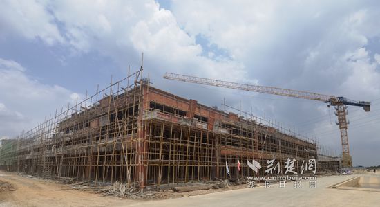 8月26日,咸寧高新區(qū)天府烤鹵施工項(xiàng)目現(xiàn)場,遠(yuǎn)處巨大的場地上,鋼柱林立,刺破蒼穹,渾然列陣。