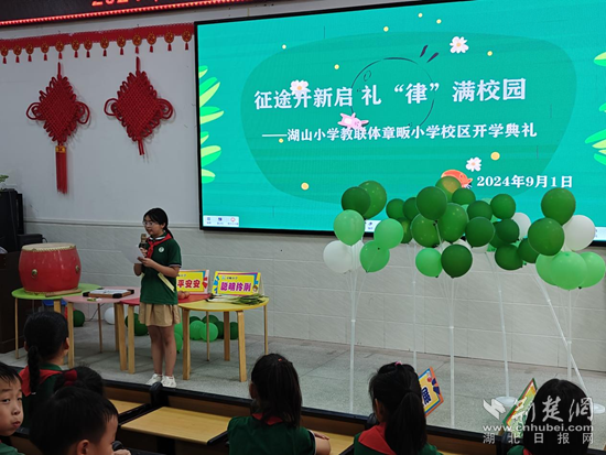湖山小學教聯體章畈小學校區(qū),師生們齊聚學校報告廳,舉行“征途開新啟,禮“律”滿校園”為主題的開學典禮。