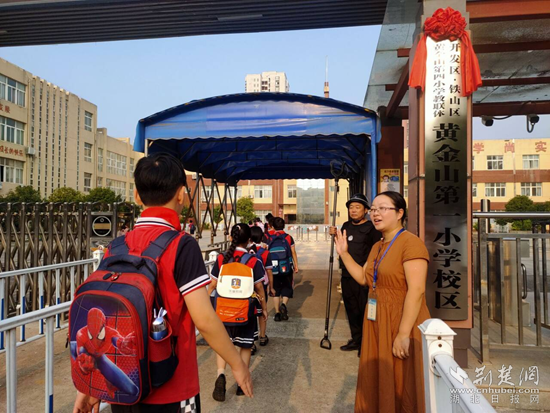 在黃金山第四小學教聯體本部校區(qū),孩子們正歡快地路過成長門。他們臉上洋溢著對未來的憧憬,小小的身影充滿著希望。