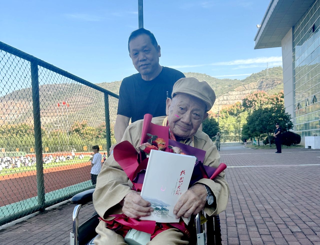 98歲老兵庫(kù)芳禹對(duì)《致敬英雄》報(bào)道集愛(ài)不釋手。呂鑒蕾 攝