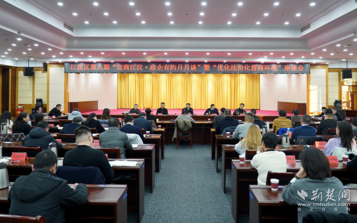 荊楚網(wǎng)(湖北日?qǐng)?bào)網(wǎng))訊(記者 何婧 通訊員 蔡宇欣)12月17日,江漢區(qū)舉辦第八期“宜商江漢·政企有約月月談”暨“優(yōu)化法治化營(yíng)商環(huán)境”座談會(huì)。區(qū)直部門、各街道主要負(fù)責(zé)人及商協(xié)會(huì)、民營(yíng)企業(yè)代表等共同參與。