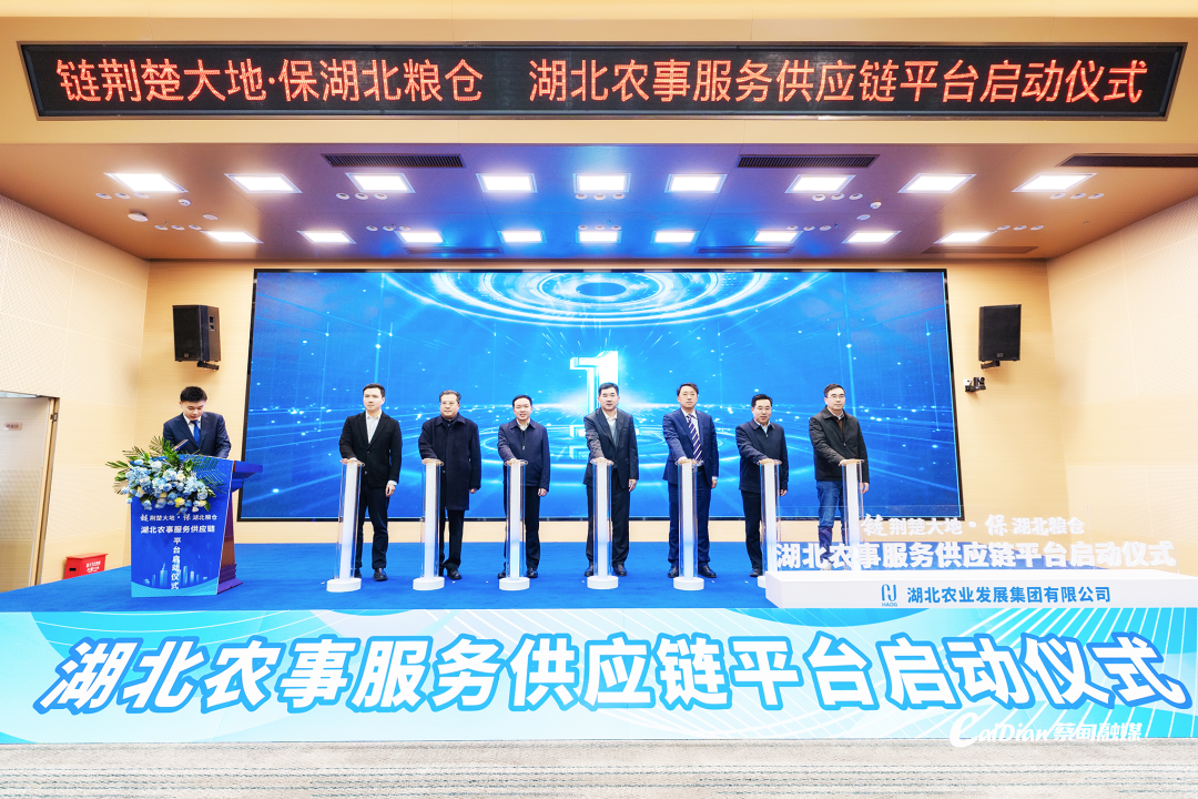 荊楚網(wǎng)(湖北日報(bào)網(wǎng))訊 (通訊員周雄、吳亭 、李偉恩、付琪)12月21日,湖北農(nóng)事服務(wù)供應(yīng)鏈平臺(tái)啟動(dòng)儀式在湖北農(nóng)發(fā)科研大樓舉行。湖北農(nóng)發(fā)集團(tuán)黨委書記、董事長朱萬奎和蔡甸區(qū)委書記余從斌,共同為湖北農(nóng)發(fā)農(nóng)事服務(wù)供應(yīng)鏈有限公司揭牌,標(biāo)志著湖北農(nóng)事服務(wù)供應(yīng)鏈平臺(tái)正式啟動(dòng)運(yùn)營。湖北農(nóng)發(fā)集團(tuán)總經(jīng)理?xiàng)盍间h出席啟動(dòng)儀式并致辭。
