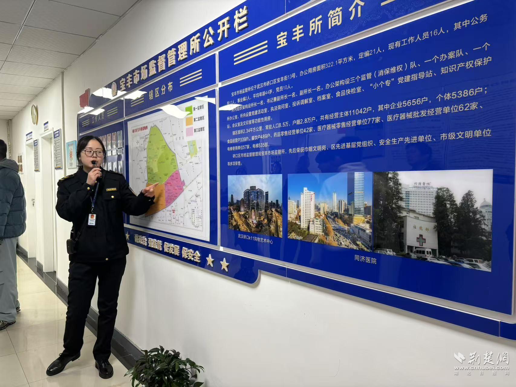 荊楚網(wǎng)(湖北日?qǐng)?bào)網(wǎng))訊(記者 何婧 實(shí)習(xí)生 尚小武)事事關(guān)乎民生、事事?tīng)縿?dòng)民心。為加強(qiáng)公眾對(duì)市場(chǎng)監(jiān)管工作的理解與支持,營(yíng)造全社會(huì)共同參與、共享營(yíng)商環(huán)境的良好氛圍,12月23日,武漢市市場(chǎng)監(jiān)督管理局聯(lián)合硚口區(qū)市場(chǎng)監(jiān)督管理局舉辦“走進(jìn)市場(chǎng)監(jiān)管所”主題活動(dòng),首站來(lái)到寶豐市場(chǎng)監(jiān)督管理所(以下稱“寶豐所”)。