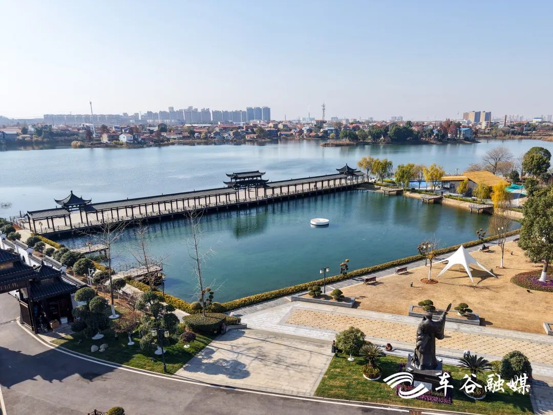 冬日暖陽下,古樸典雅的建筑歷史感滿滿,諸葛像、武侯池、濯纓水閣錯(cuò)落有致,三國歷史文化長廊雛形初現(xiàn)。當(dāng)天,記者實(shí)地探訪軍山諸葛城,于古色古香的黛瓦飛甍間,品味原汁原味的三國文化。