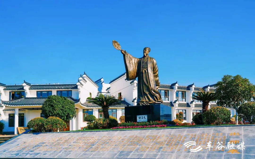 走進(jìn)諸葛城,樹木蔥蘢、河湖密布。清澈如鏡的武侯池邊,諸葛亮塑像峨冠博帶、高舉羽扇,讓人仿佛穿越時(shí)空,回到1800年前的赤壁古戰(zhàn)場——