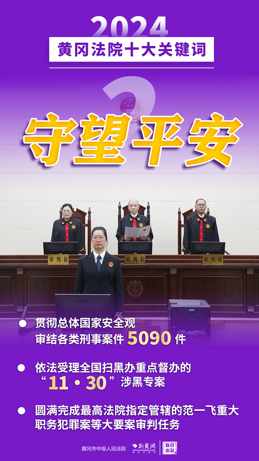 2024年,黃岡法院深入學(xué)習(xí)貫徹黨的二十屆三中全會(huì)精神,認(rèn)真落實(shí)黨中央決策部署和省委、市委工作要求,忠誠(chéng)履職、擔(dān)當(dāng)作為,著力護(hù)航經(jīng)濟(jì)高質(zhì)量發(fā)展、助推社會(huì)高效能治理、守護(hù)群眾高品質(zhì)生活,各項(xiàng)工作取得新發(fā)展、實(shí)現(xiàn)新突破。