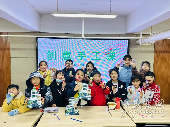 “爸爸媽媽白天要上班,在這里我可以和老師同學(xué)們一起玩,寒假一點(diǎn)都不無聊了。”在手工課上,在志愿者的引導(dǎo)下,何紫琳與同學(xué)們一起制作小蛇,親手完成的作品將作為社區(qū)公共空間的裝飾,慶祝新年的到來。