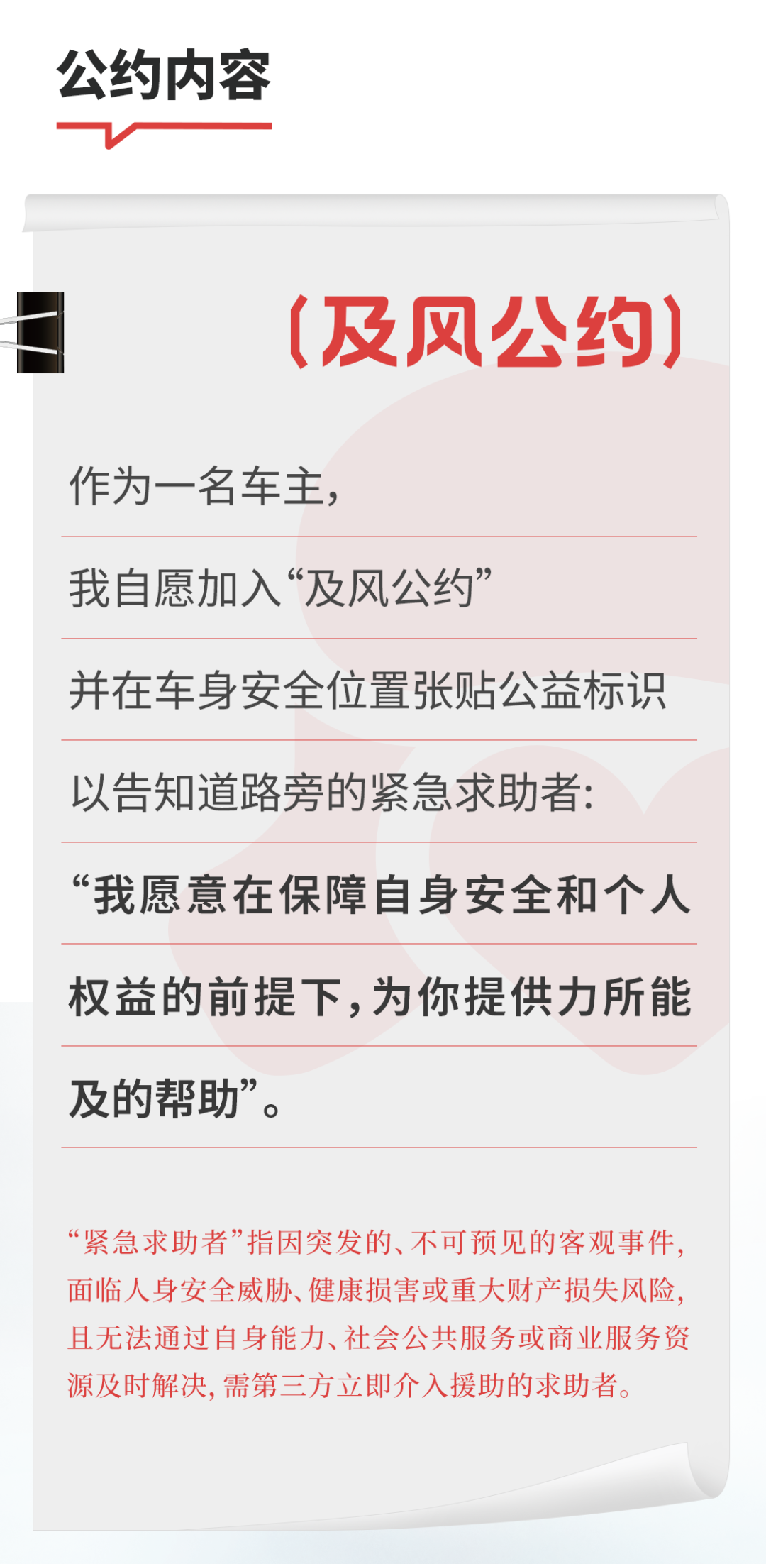 各位愛心車主,雷鋒同志曾說:“一滴水只有放進大海才永遠不會干涸”。我們堅信,《及風公約》的誕生是起點,是道路文明新敘事的開篇。當老人面對散落一地的水果束手無策時,當考生因交通阻滯可能錯失人生機遇時,當司機突發(fā)疾病需要緊急救助時——這些看似微小的場景,恰恰是檢驗社會文明成色的試金石。