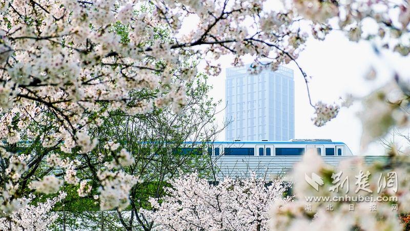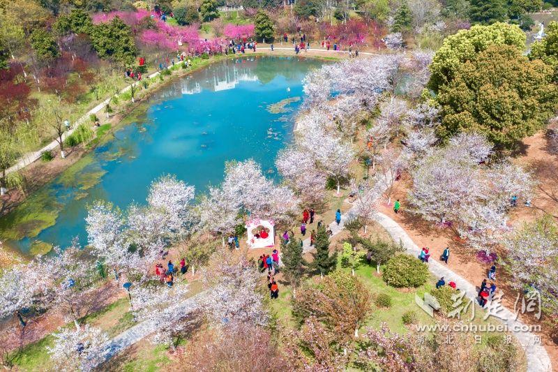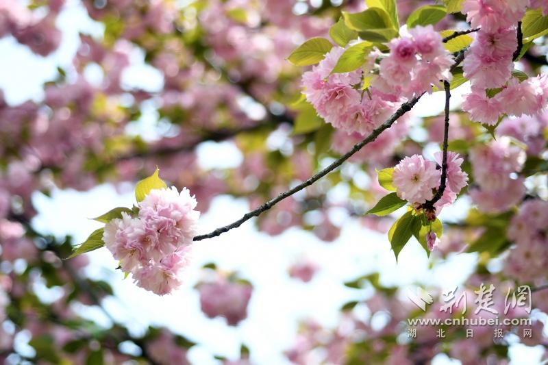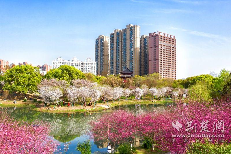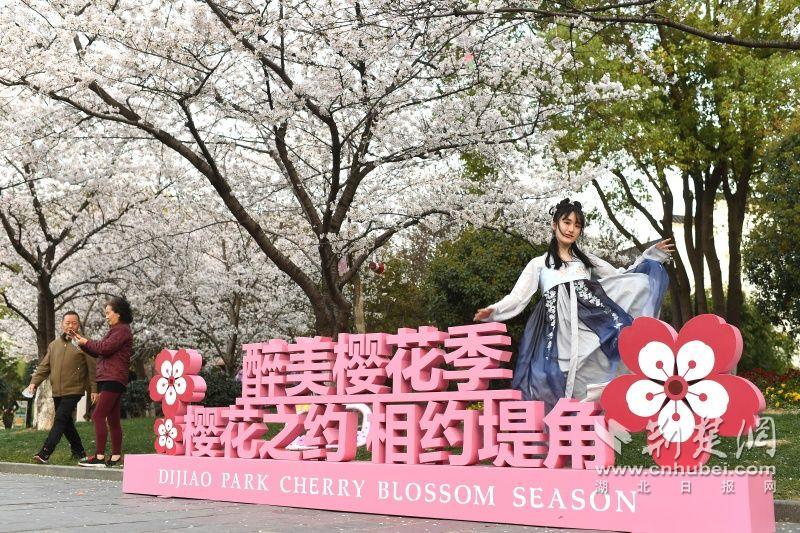 作為武漢“必打卡十大賞櫻點(diǎn)”之一的堤角公園內(nèi)共有櫻花樹1500余株22種,花期從3月一直到4月。通訊員供圖