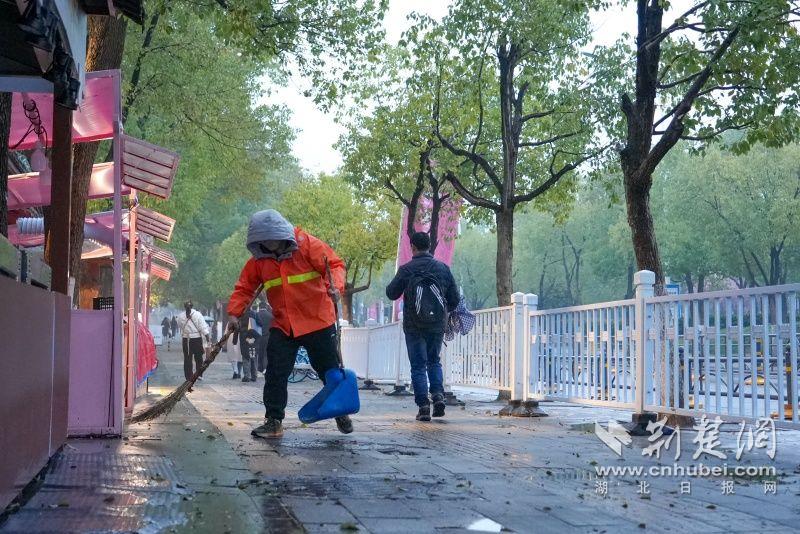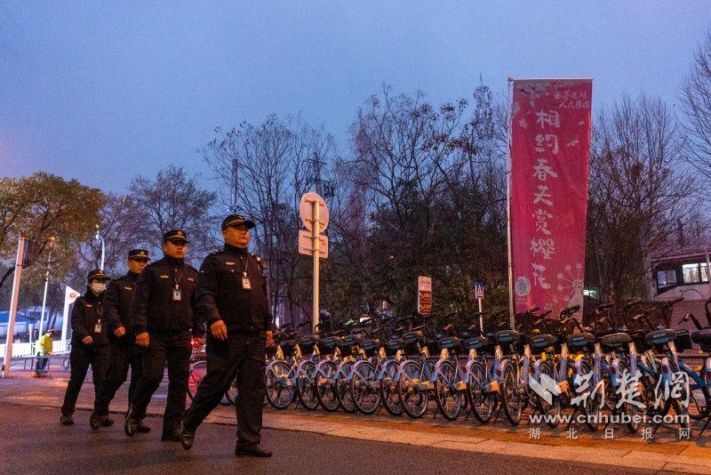 東湖風(fēng)景區(qū)城管執(zhí)法局一中隊(duì)負(fù)責(zé)人介紹,為了加強(qiáng)櫻園周邊保障力量,在梅花季結(jié)束后無(wú)縫切換櫻花季保障模式,除日常負(fù)責(zé)櫻園片區(qū)的7人小組外,中隊(duì)從其他片區(qū)抽調(diào)10名隊(duì)員,在每日中午和晚上支援,確保全天候不斷檔護(hù)航景區(qū)市容秩序?!霸绨送硎闪顺B(tài),每天等到櫻園閉園、游客散盡后,才組織收班?!?/p>