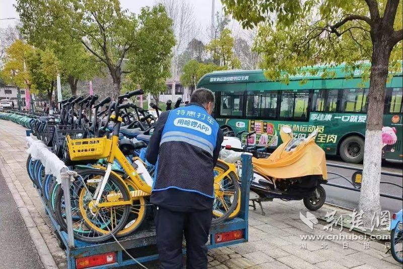 轉(zhuǎn)運(yùn)共享單車(chē)。通訊員供圖