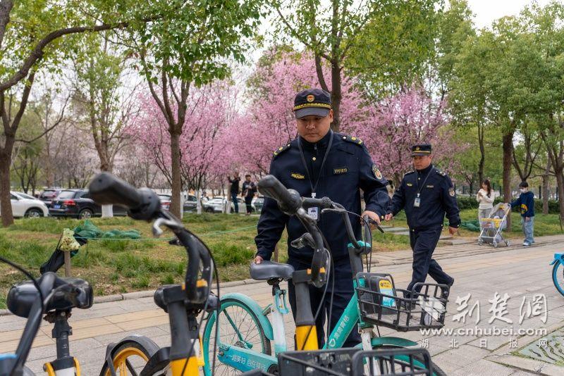 城管部門(mén)在櫻園大門(mén)口、魯磨路植物園路路口和魯磨路設(shè)置了三個(gè)相對(duì)固定的值守崗位,安排專(zhuān)人執(zhí)勤守控,不定時(shí)進(jìn)行流動(dòng)巡查,勸離流動(dòng)攤販、巡查共享單車(chē)等。