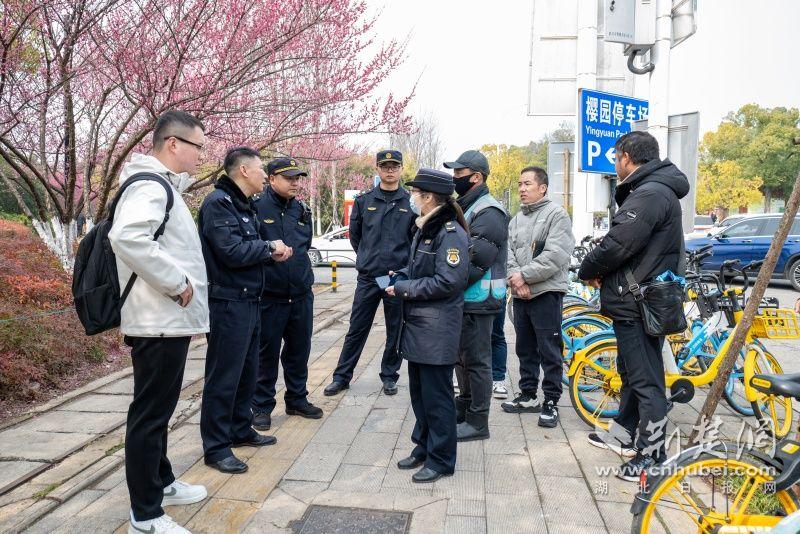為了營(yíng)造良好的賞櫻環(huán)境,更好服務(wù)市民游客,東湖風(fēng)景區(qū)聚焦櫻園游客體驗(yàn)和交通痛點(diǎn)問(wèn)題,多次開(kāi)展現(xiàn)場(chǎng)“馬路辦公”,圍繞訪梅路、植物園路、梅園東停車(chē)場(chǎng)周邊環(huán)境、交通秩序、共享單車(chē)等問(wèn)題“問(wèn)診開(kāi)藥”,聯(lián)動(dòng)開(kāi)展集中整治。