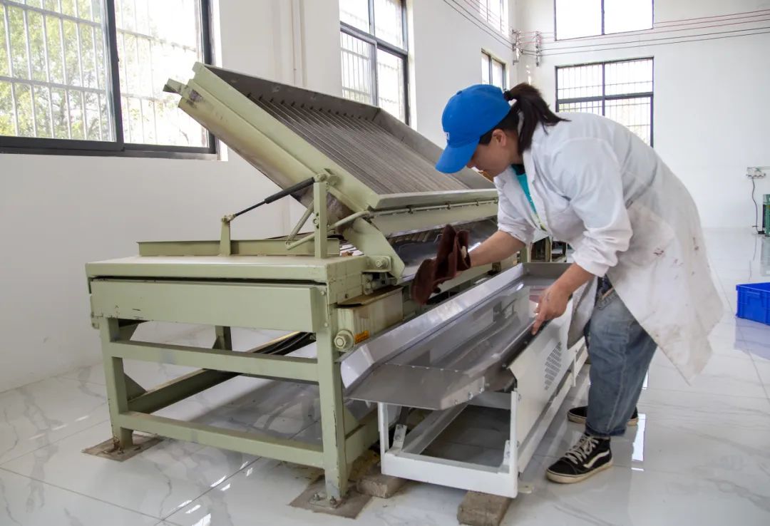 在距離木蘭湖20公里外的蔡家榨街道,綿陽(yáng)山茶樹種植專業(yè)合作社內(nèi)千余平方米的制茶車間機(jī)械運(yùn)轉(zhuǎn)轟鳴。自動(dòng)生產(chǎn)線正將鮮葉轉(zhuǎn)化為精品茶,智能化監(jiān)測(cè)屏實(shí)時(shí)跳動(dòng)殺青溫度和時(shí)間,身著白色工服的技師穿梭調(diào)試設(shè)備,茶青在傳送帶上翻滾、定型,濃郁的茶香的在空氣中彌漫。