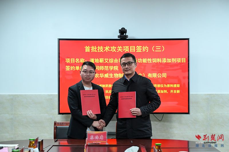 揭牌儀式上,活動(dòng)現(xiàn)場(chǎng),黃岡師范學(xué)院黨委副書記、校長(zhǎng)漆昌柱和黃岡市科技局黨組書記姜寬分別為省級(jí)重點(diǎn)實(shí)驗(yàn)室學(xué)術(shù)委員會(huì)專家頒發(fā)聘書。重點(diǎn)實(shí)驗(yàn)室分別與湖北衛(wèi)爾康現(xiàn)代中藥有限公司、農(nóng)華威生物制藥(湖北)有限公司等6家企業(yè)簽訂產(chǎn)業(yè)關(guān)鍵技術(shù)攻關(guān)項(xiàng)目協(xié)議。項(xiàng)目涵蓋道地藥材多個(gè)研究與開(kāi)發(fā)領(lǐng)域的技術(shù)攻關(guān),總項(xiàng)目經(jīng)費(fèi)達(dá)370萬(wàn)元。