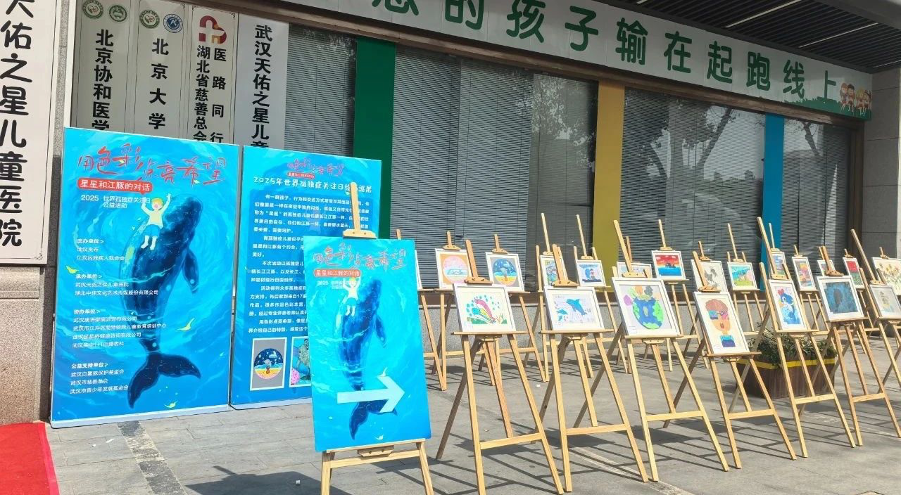 2025年4月2日,在第18個世界孤獨癥關(guān)注日當天,“星星與江豚的對話”繪畫巡展于武漢西北湖公園畔溫暖開展,30幅由孤獨癥兒童創(chuàng)作的畫作吸引數(shù)百名市民駐足。