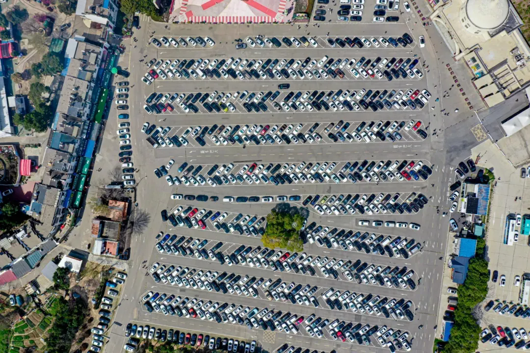 清明假期,木蘭景區(qū)群停車場上演“大型車展”,秩序井然。