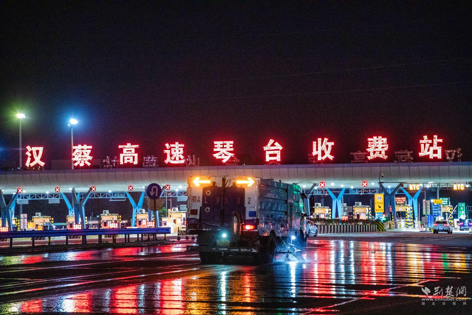 29日夜晚11時(shí)許,在漢陽(yáng)漢蔡高速進(jìn)出城口,高壓清洗車、吸掃車、隔音屏清洗車等10余臺(tái)機(jī)械作業(yè)裝備待發(fā)。