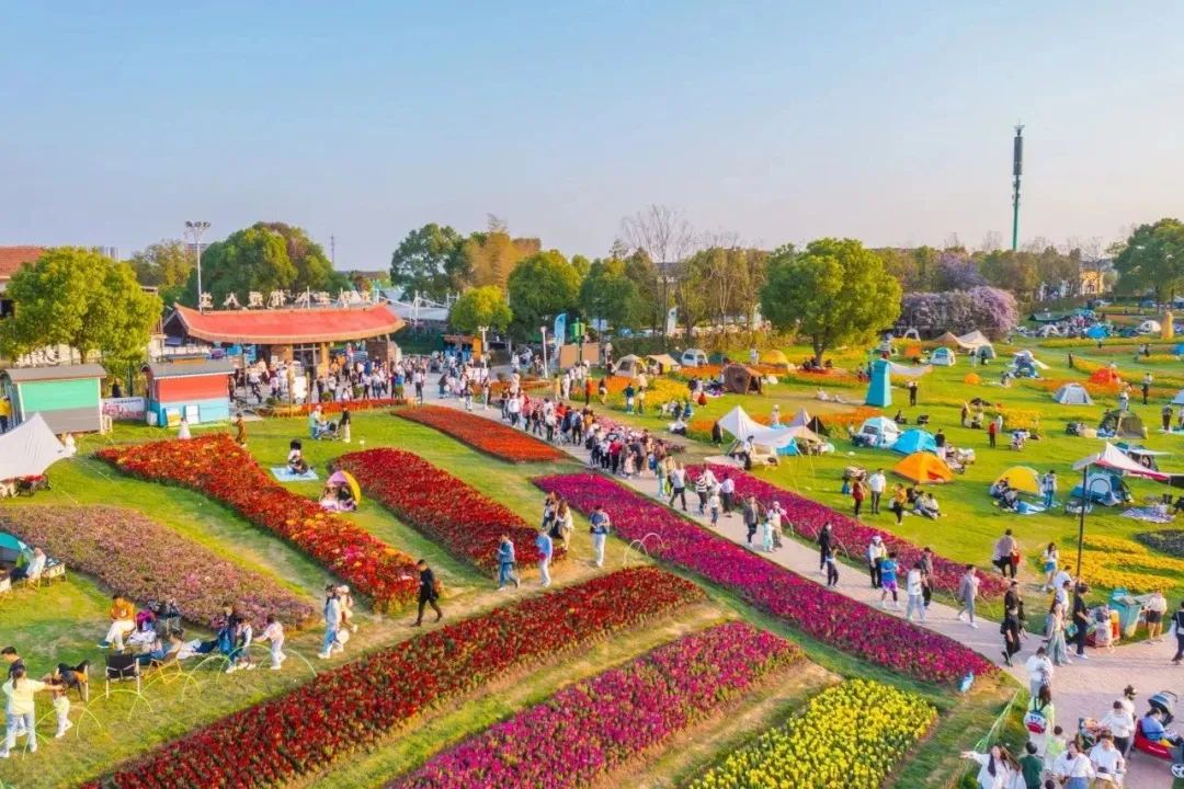 五月的武漢花博匯,宛如一幅絢麗的春日畫卷。馬鞭草紫浪翻涌,玫瑰、月季嬌艷欲滴,大花蔥亭亭玉立,繽紛花海成為游客們的 “打卡圣地”。一頂頂帳篷點綴其間,人們在此邂逅浪漫春光,用鏡頭定格美好瞬間。景區(qū)內(nèi)人頭攢動,拍照的快門聲此起彼伏,熱門打卡點前排隊等候的游客隊伍蜿蜒如長龍。