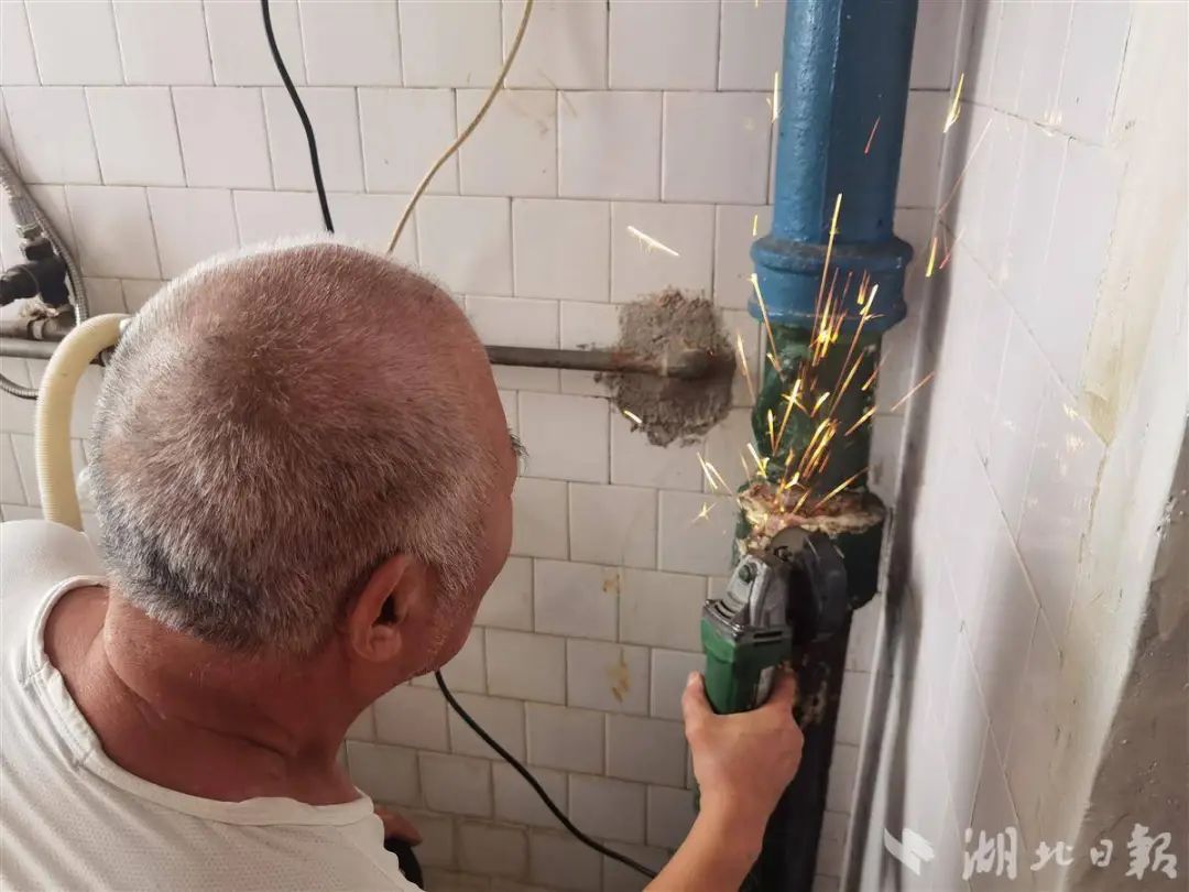 △周重書為居民維修水管。圖源湖北日?qǐng)?bào)。