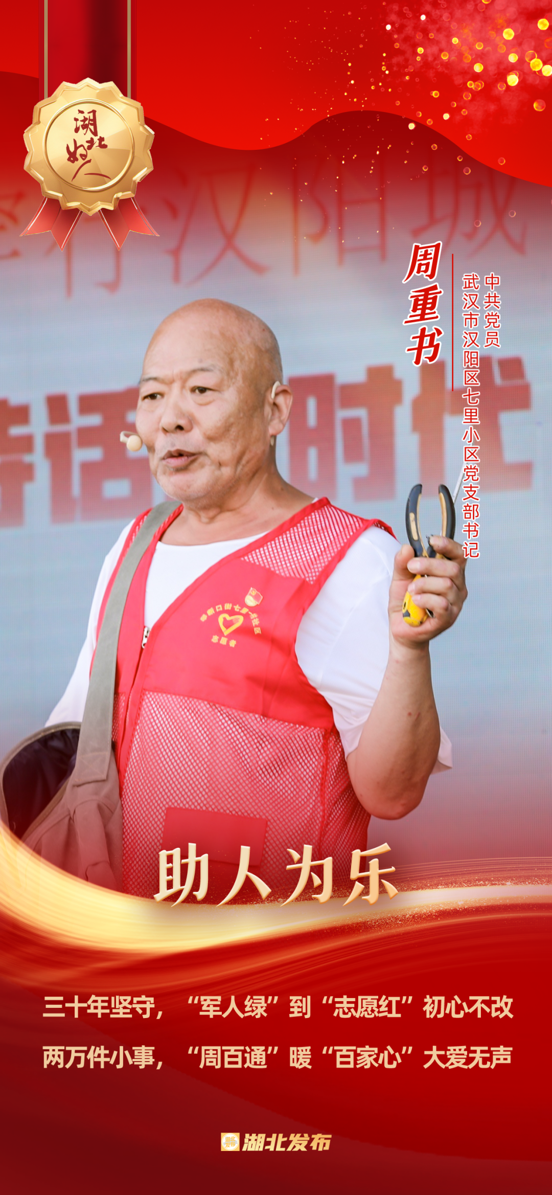 1973年在部隊(duì)入黨,1976年轉(zhuǎn)業(yè)到武漢家具廠,2009年被選為社區(qū)黨委委員,2023年榮獲“武漢楷?!狈Q號(hào)……今年75歲的周重書是一名退伍老黨員,在部隊(duì)曾兩次榮立三等功,在工廠也多次被評(píng)為先進(jìn)工作者和模范標(biāo)兵。