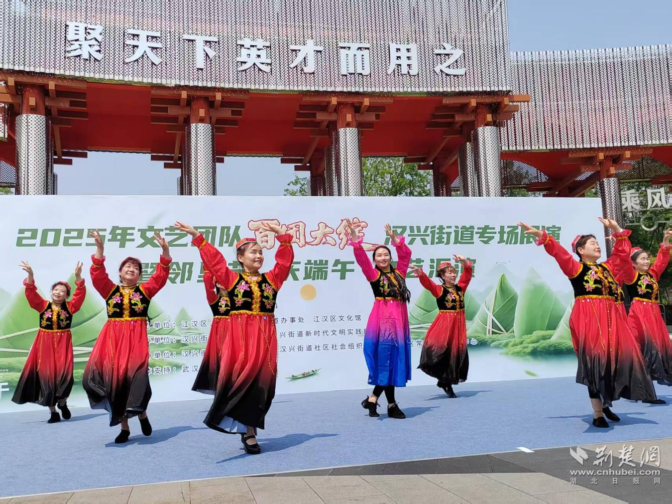 荊楚網(wǎng)(湖北日報網(wǎng))訊(記者 何婧 通訊員 鄒瑜 徐曼)5月24日,江漢區(qū)漢興街道“百團大綻”專場展演暨鄰里節(jié)慶端午文藝匯演在常青公園人才廣場舉行。轄區(qū)居民們在歡歌熱舞中迎接濃情端午,共享一場文化盛宴。