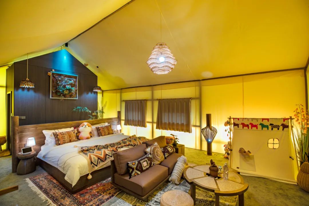 ? 三家民宿組CP選你所愛:除了專注親子出游需求的樂貝·甘露山,隔壁新中式「千里走單騎」和叢林秘境「?jìng)€(gè)個(gè)世界」也各具特色,一鍵切換度假畫風(fēng)!