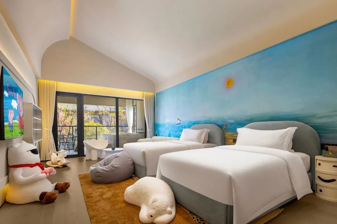 29間主題客房承包全家歡笑,從蘑菇王國到兔子先生,從綠野仙蹤到夢(mèng)樂島,每一扇門后都藏著無盡的驚喜與想象。客房均精心打造專屬童趣壁畫,仿佛住進(jìn)絢爛多彩的童話世界。